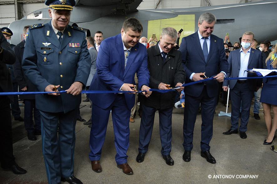 Командувач ПС ЗСУ, генерал-полковник Дроздов С.С., Генеральний директор ДК «Укроборонпром» Гусєв Ю.В., В.о. Генерального директора ДП «АНТОНОВ» Бичков С.А. та Віце-прем»єр-міністр- Міністр з питань стратегічних галузей промисловості Уруський О.С. розрізають стрічку з нагоди виймання фюзеляжу першого літака Ан-178 зі стапеля