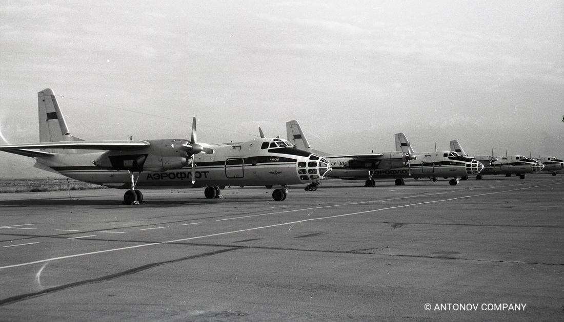 First flight 1967The AN-30 specialized aerial survey airplane is designed on the basis of the AN-24 airplane. Five camera hatches with sealed glazed windows, a separate navigator’s compartment with a wide field of view in the front hemisphere ensure the effectiveness of airplane use for aerial survey operations. A wide range of photographic altitudes and a variety of installed aerial cameras enable to take pictures for topographic maps on a scale from 1:3000 to 1:200000. With the special equipment installed, the AN-30 is used for mineral prospecting, ice patrol, and survey of fish schools. The AN-30 was serially manufactured at the Kyiv Aviation Plant, where 124 airplanes were built between 1973 and 1979.